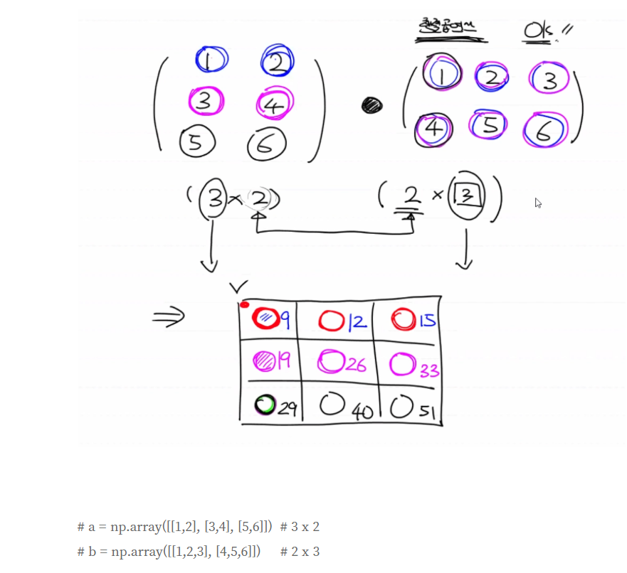 # 행렬곱연산 ( matrix multiplication : 매트릭스 곱하기)