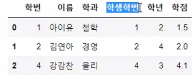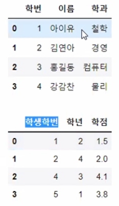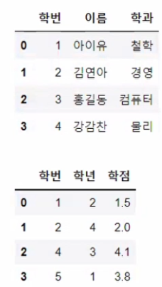 df3 = pd.merge(df1, df2, left_on='학번', right_on='학생학번', how='inner')