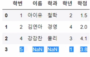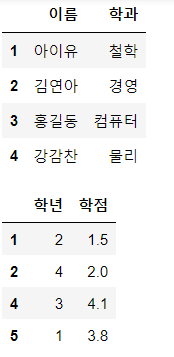# df3 = pd.merge(df1, df2, on='학번', how='left')