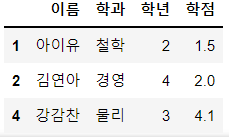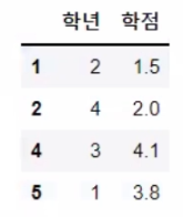 '학점': [1.5, 2.0, 4.1, 3.8]}