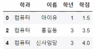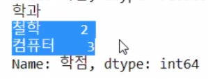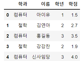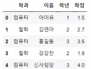 df = pd.DataFrame({'학과' : ['컴퓨터', '철학', '컴퓨터', '철학', '컴퓨터'],