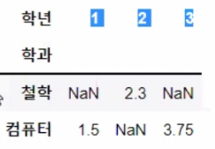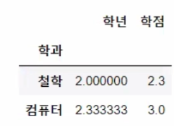 # 많이 사용하는 방식은 최 하위 index[밑 상황에서는 학년이 2차index]를 column으로 만들어서 dataframe으로 변환시키는 방법을 많이 이용해요!