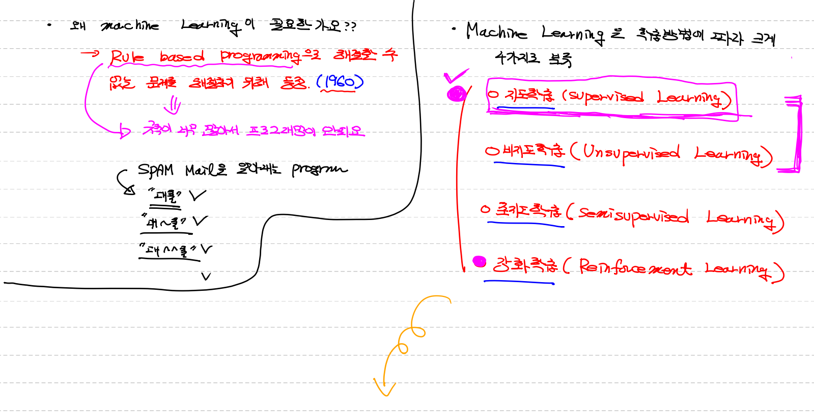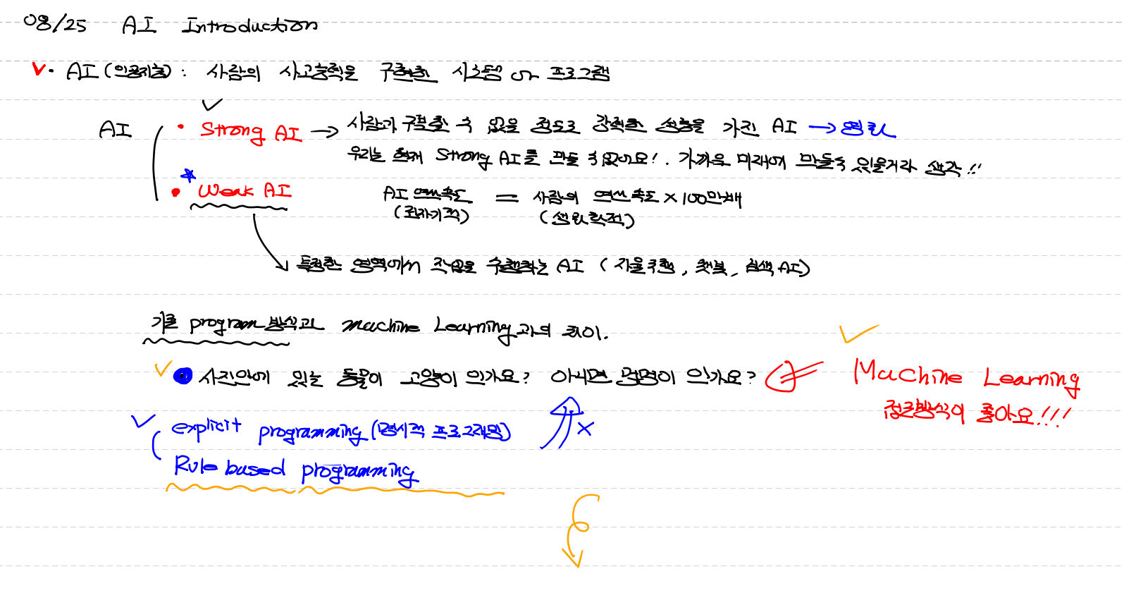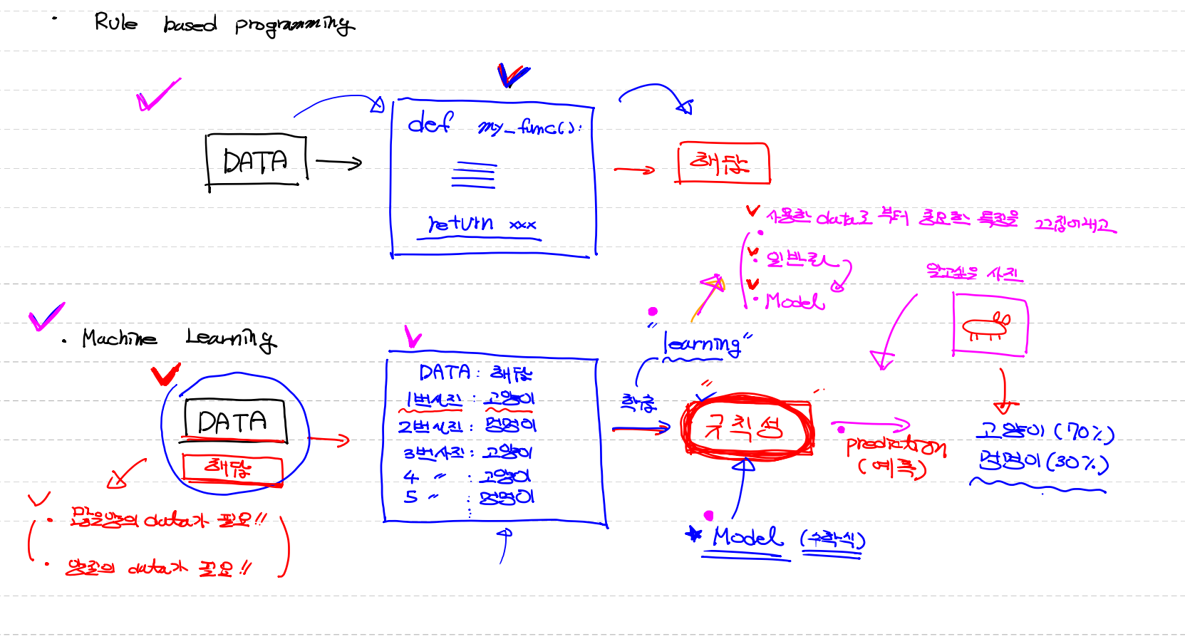 기존 programming : explicit programming(명시적 프로그래밍) , Rule based programming