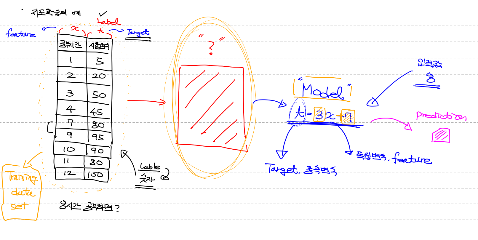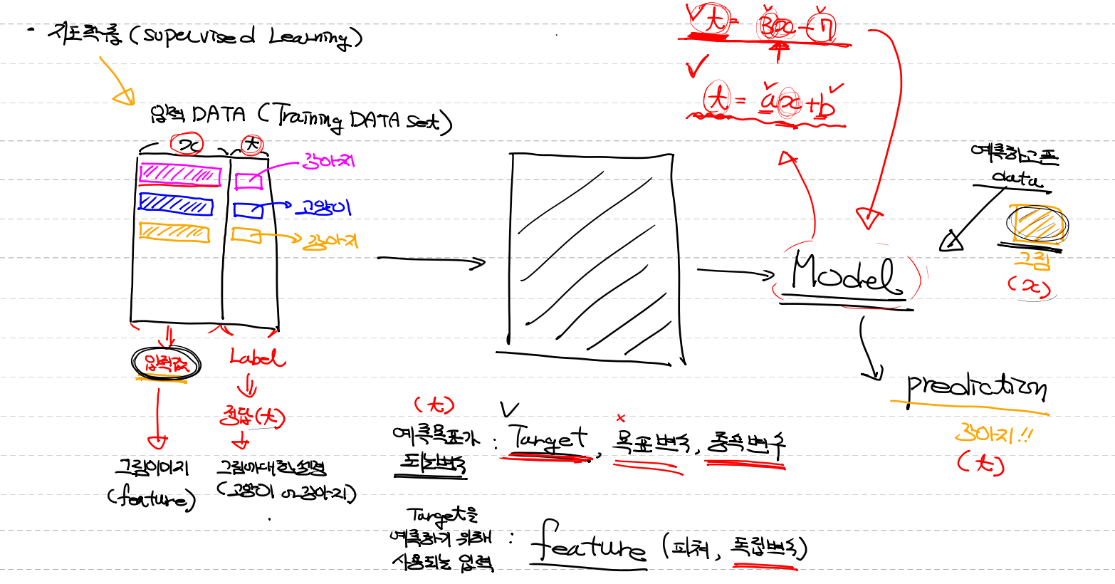 (feature - / 피쳐 / 독립변수 예측하기 위해 사용되는 입력)
