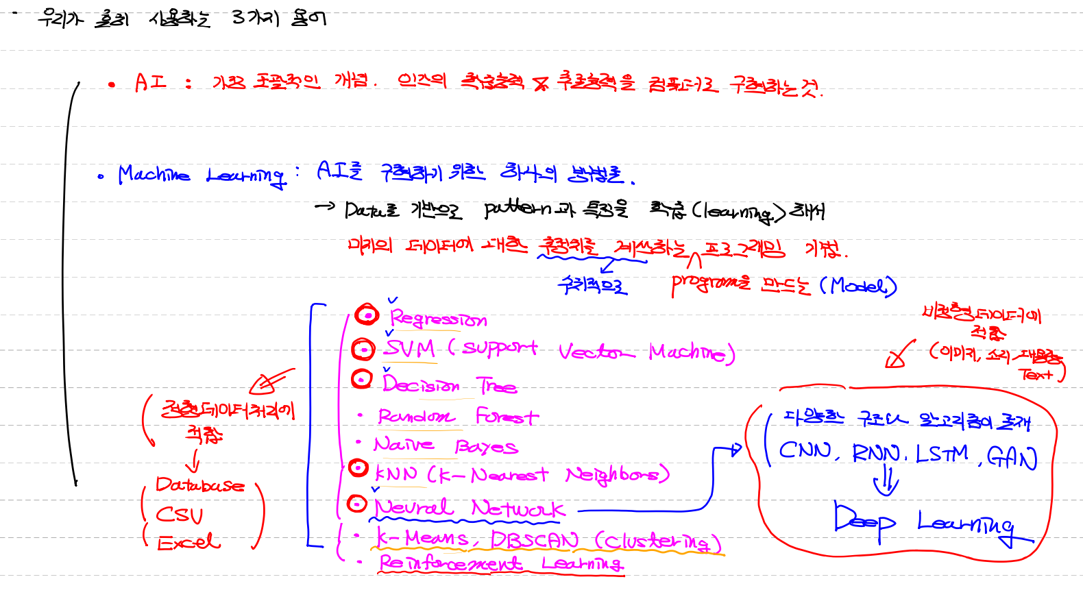 - Data를 pattern과 특징을 학습(learning)해서