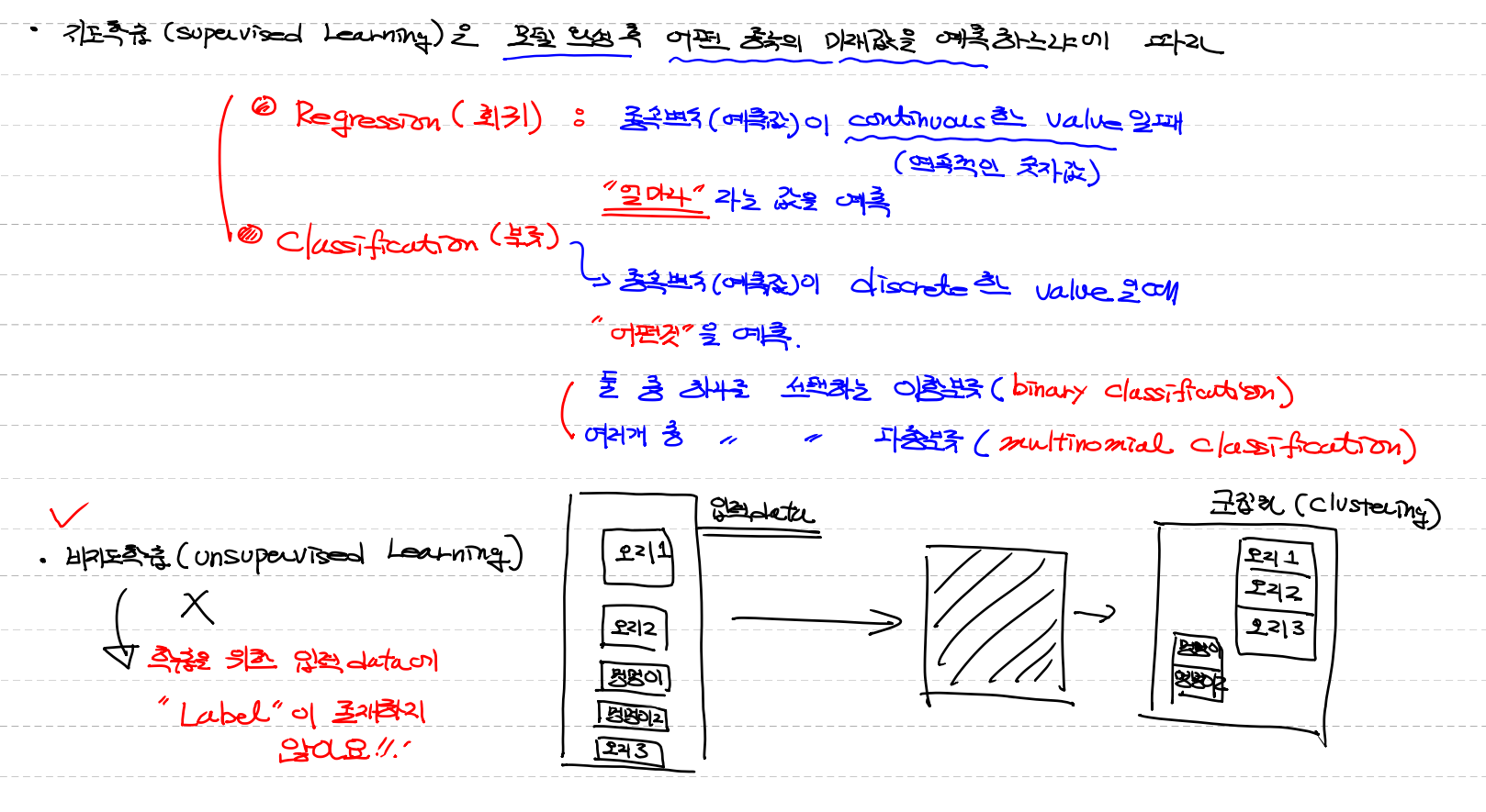 - 비지도 학습 (Un Supervised Learngin)