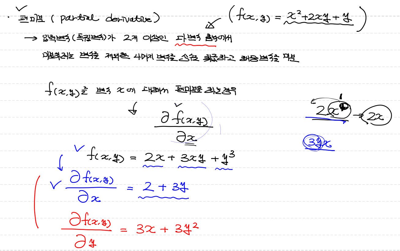 :입력변수가 2개 이상인 다변수 함수에서 미분하려는 변수를 제외한 나머지 변수를