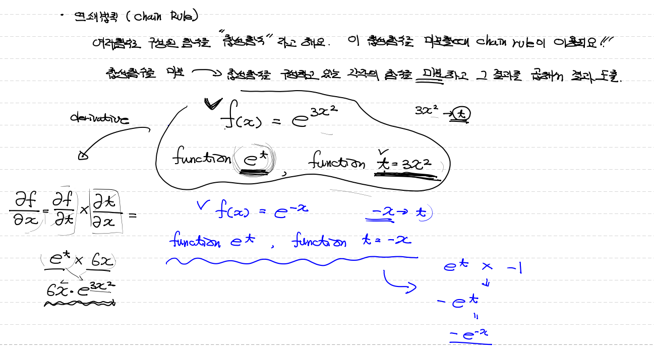 여러함수로 구성된 함수를 "합성함수"라고 해요, 이 합섭함수를 미분할때 chain rule이 이용되요!!