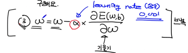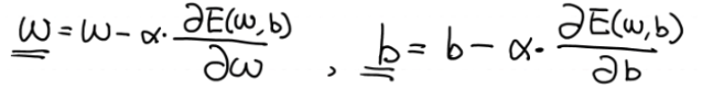 E(w,b)를 최소로 만드는 w,b를 구하기 위해 Gradient Desert Algorithm(경사하강법)을 이용
