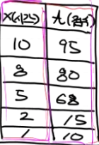 '공부시간(x)' : [1,2,3,4,5,7,8,10,12,13,14,15,18,20,25,28,30],