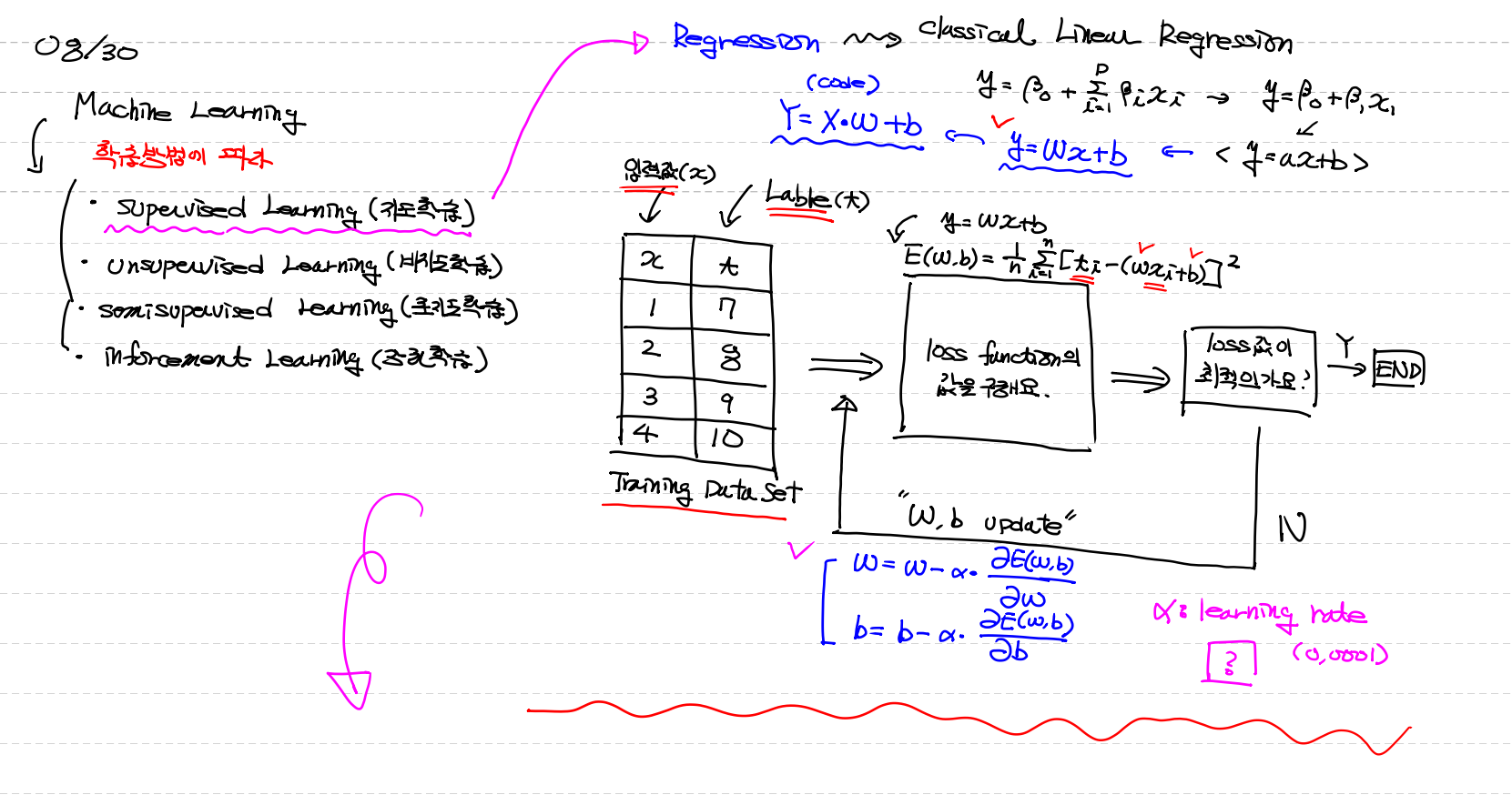 supervisde Learning(지도학습) → Regression(회기) → classical Linear Regression (회기중 가장 기본적인 회기기법)