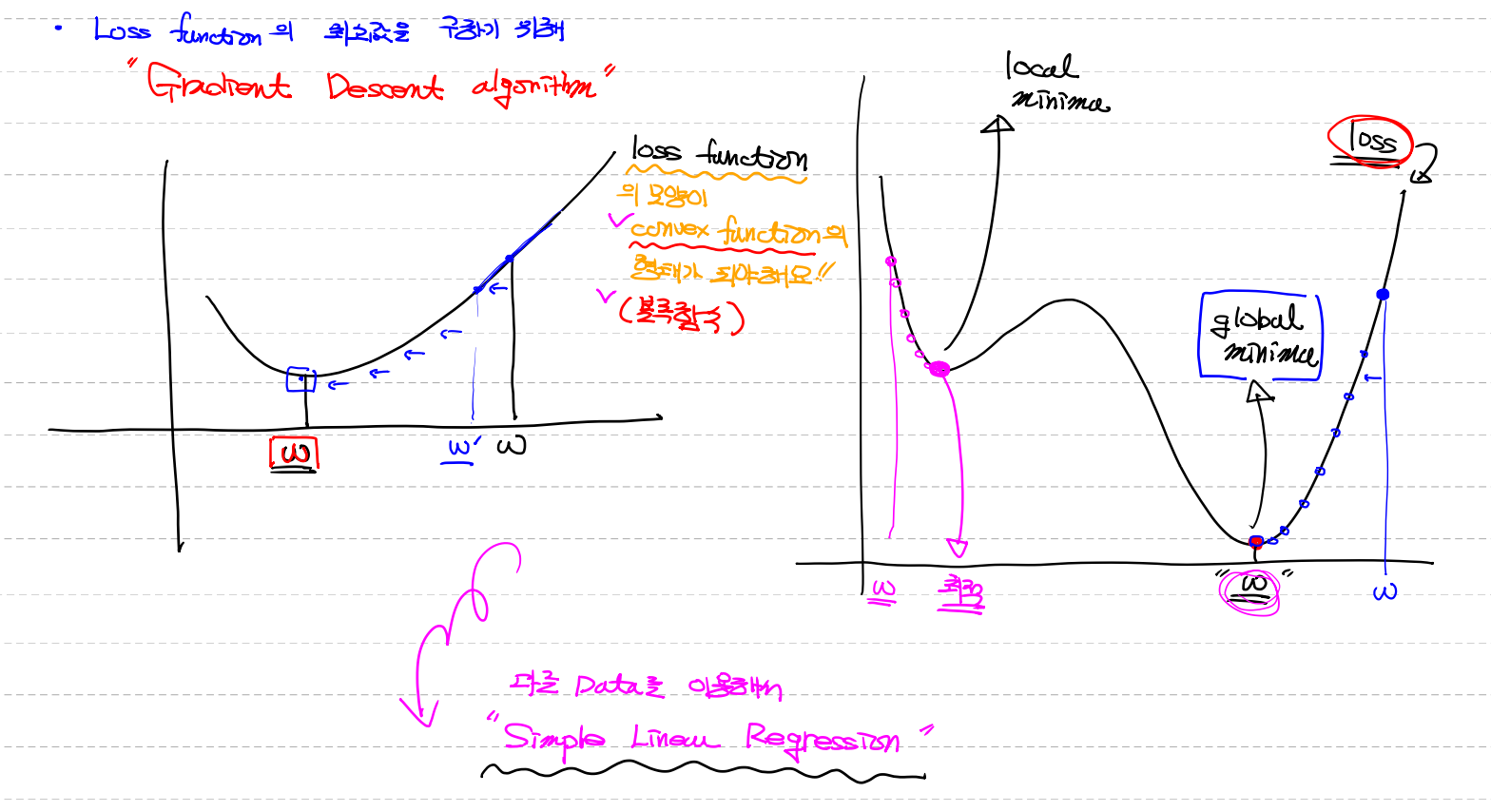 조건 - loss function의 모양이 conuex function(볼록함수)의 형태가 되야해요