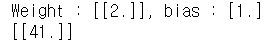 print('Weight : {}, bias : {}'.format(model.coef_, model.intercept_))