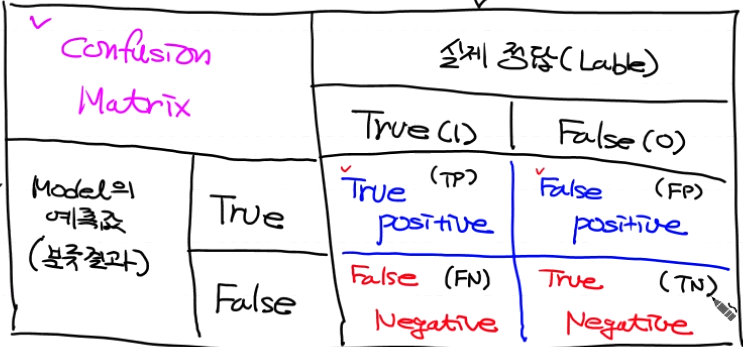 True는 내가 맞췄다 False는 내가 틀렸다positive는 내 model의 예측값이 TrueNegative는 내 model의 예측값이 False