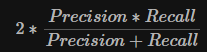 F1 score는 precision 과 recall의 조화평균입니다. 수식은 다음과 같습니다.