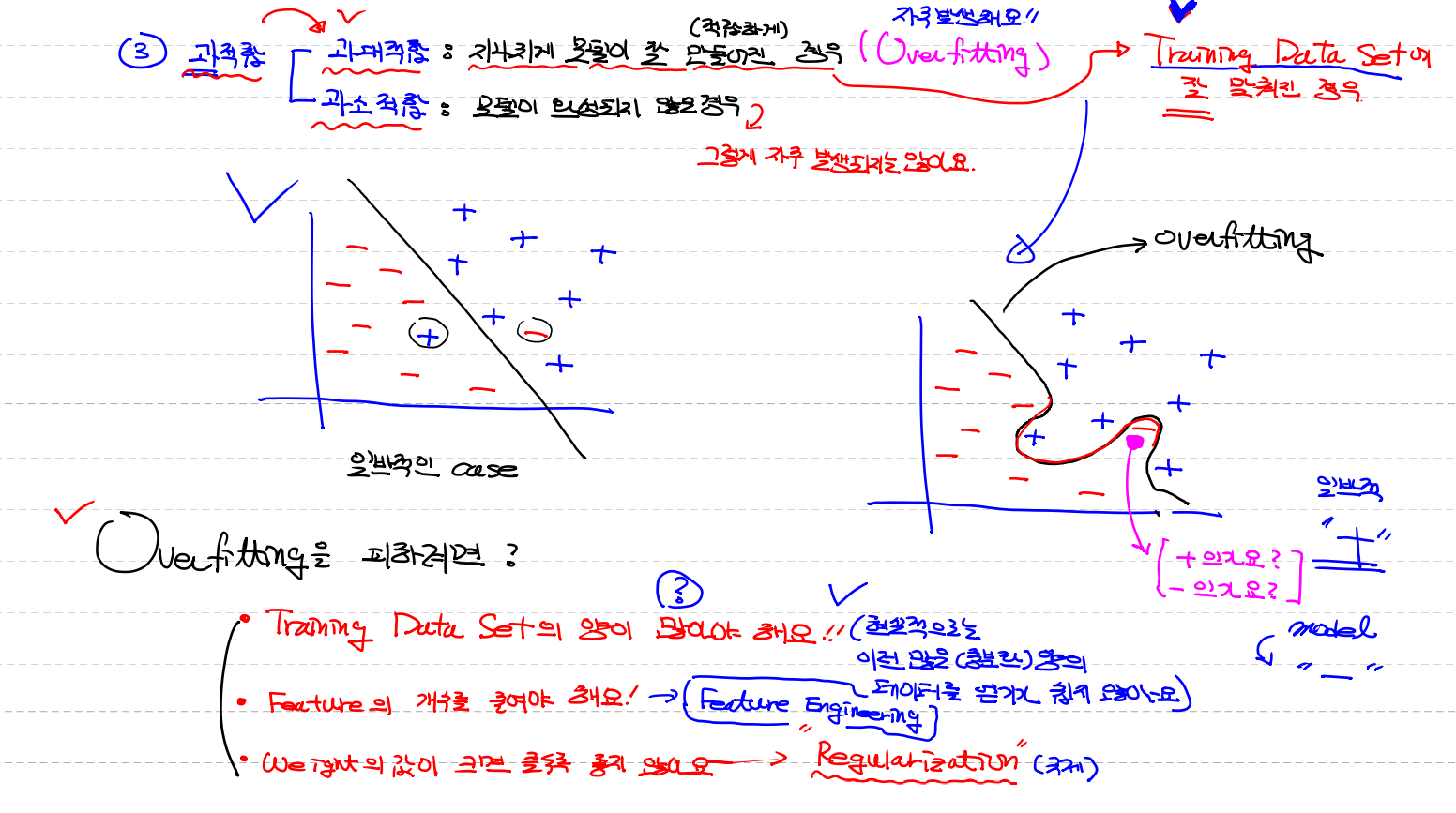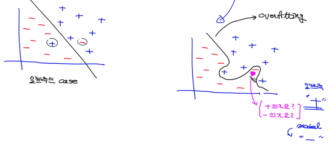 과적합은 현재 배운걸로는 어렵고 deep learning가서 배운다 , 그래프로 간단히 알수 있다