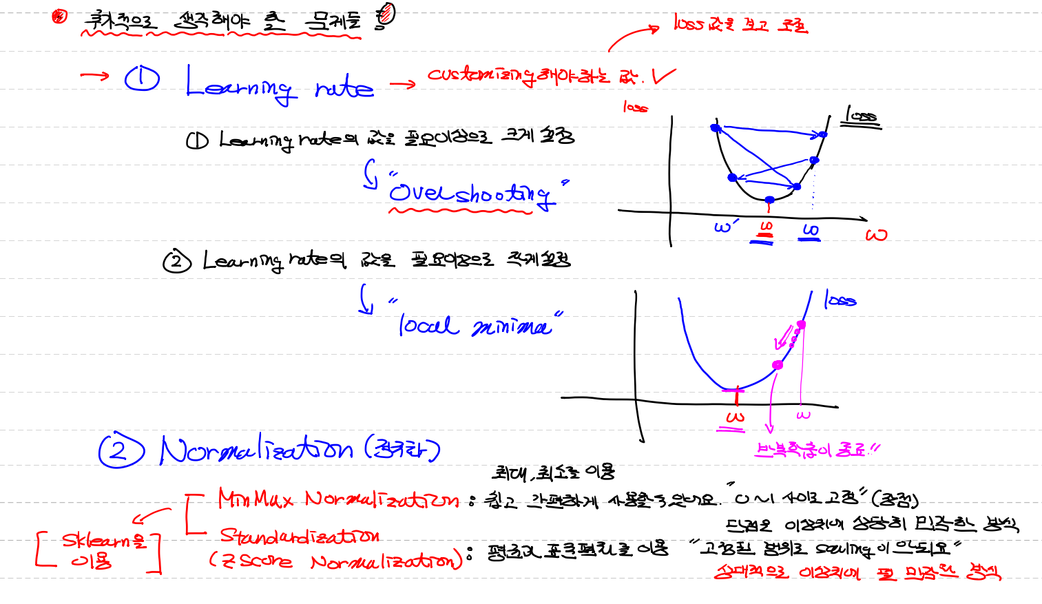 Overshooting : Learning rate의 값이 필요이상으로 크게 설정 즉 W의 값이 너무 크게 변하는걸 지칭
