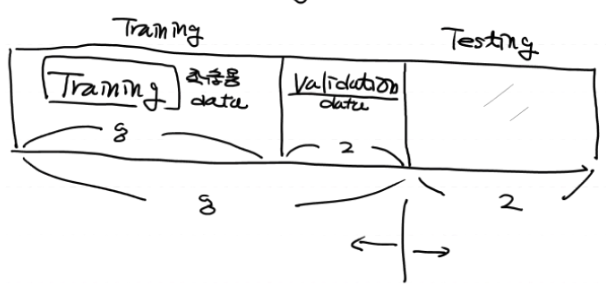 Training Data Set 100% = Training Data80% + Validation Data20% (간혹 사람들이 testing data라고 부른다)