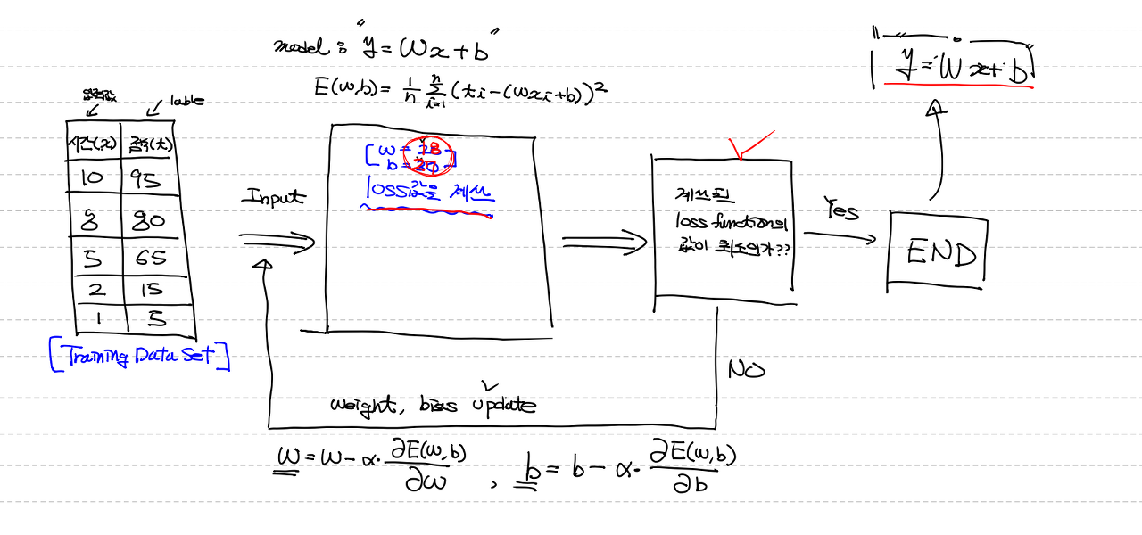 해서 w 와 b값 update(epoch ['이포크'] 라고도한다)