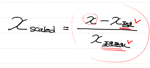 - 동일한 척도x / 이상치에 많은 영향을 안받는다 (평균과 표준편차를 이용해서)