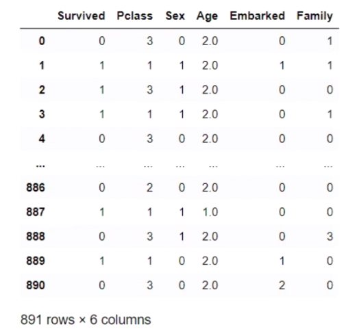 train_df = df.drop(['PassengerId', 'Name', 'Ticket', 'Fare', 'Cabin'], axis=1, inplace=False)