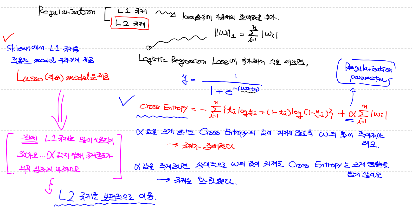Sklearn에서 L1 규제를 적용한 model이 우리에게 제공 → Lasso(라쏘)model을 제공
