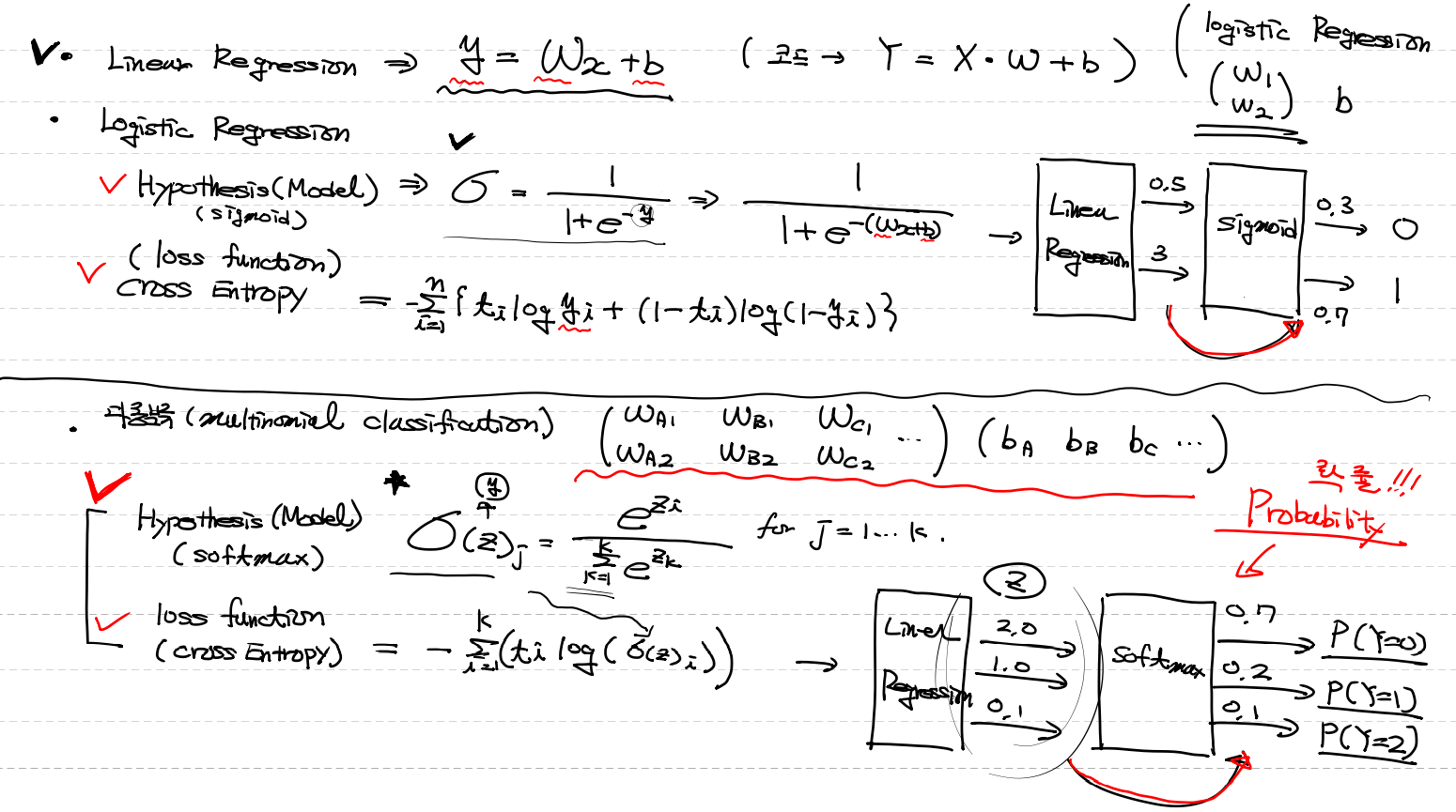 Sigmoid → Softmax ( multinomial classfication의 model은 n개의 대한 확률값 )