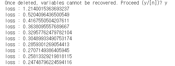 print('accuracy(정확도) : {}'.format(sess.run(acc, feed_dict={X:valid_x_data_norm,