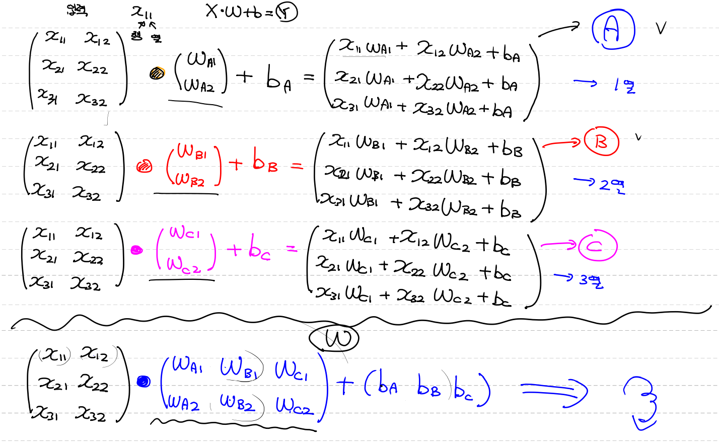 (2) w의 colum(열)의수는 class의 개수와 일치