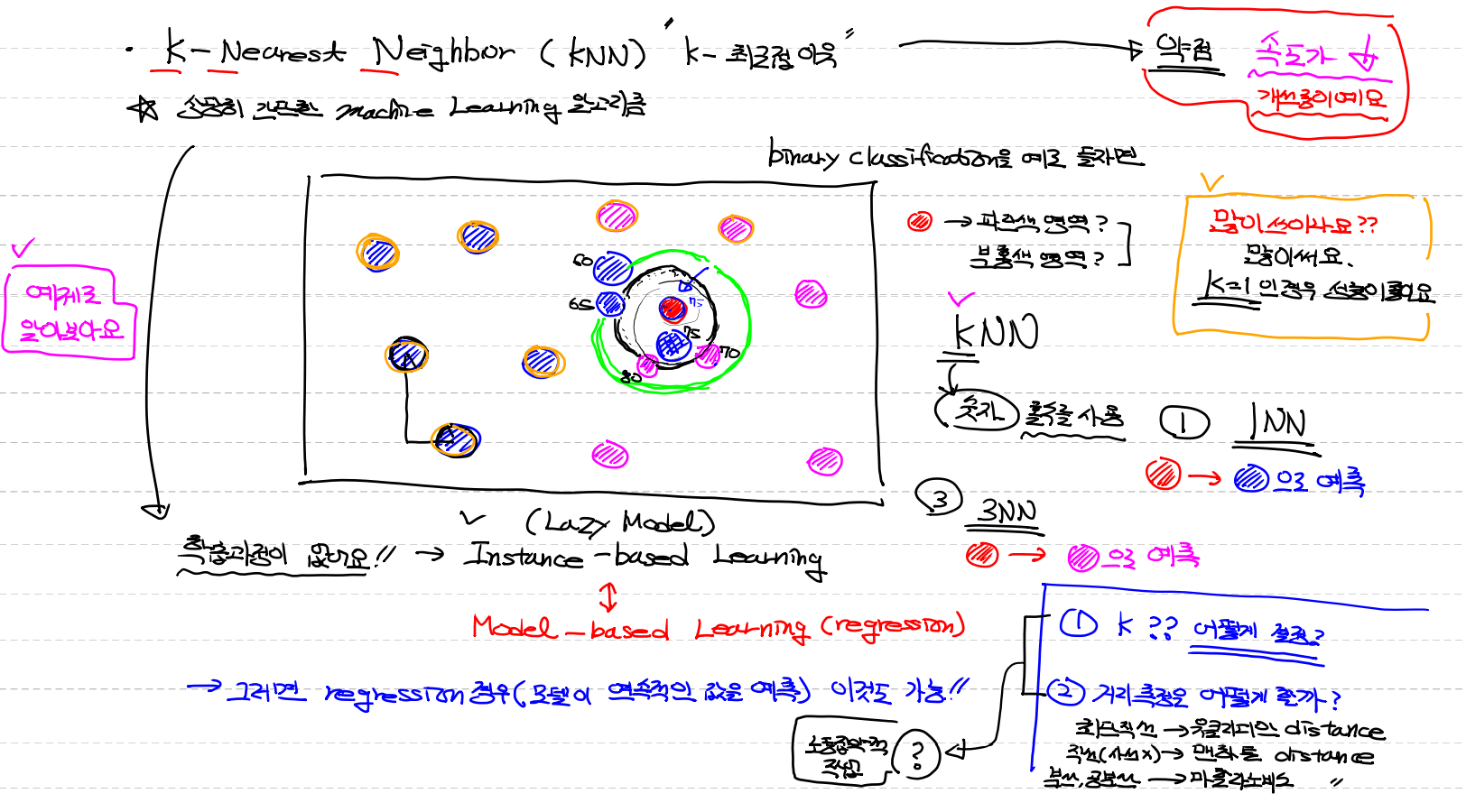 - 학습과정이 없어요!! Instance - based Learning or Lazy Model ↔ Model - based Learning (regression)