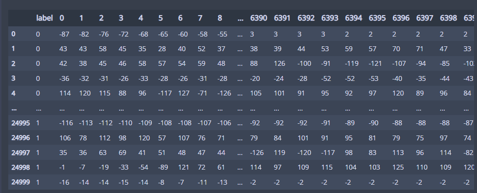 # 우리의 CSV파일로 DataFrame을 만들면 shape => (25000, 6401)