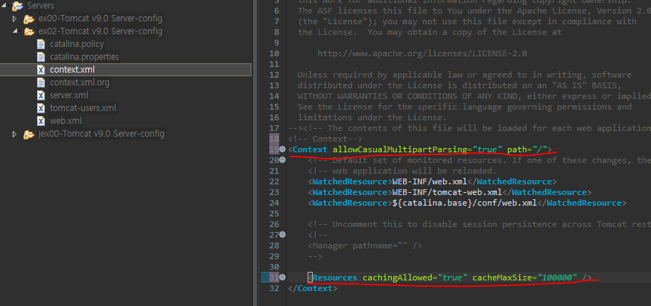 tomcat 서버의 context.xml 파일 수정후 재기동
