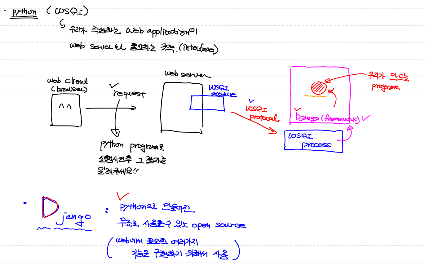 WSGI위에 있는게 Django이다