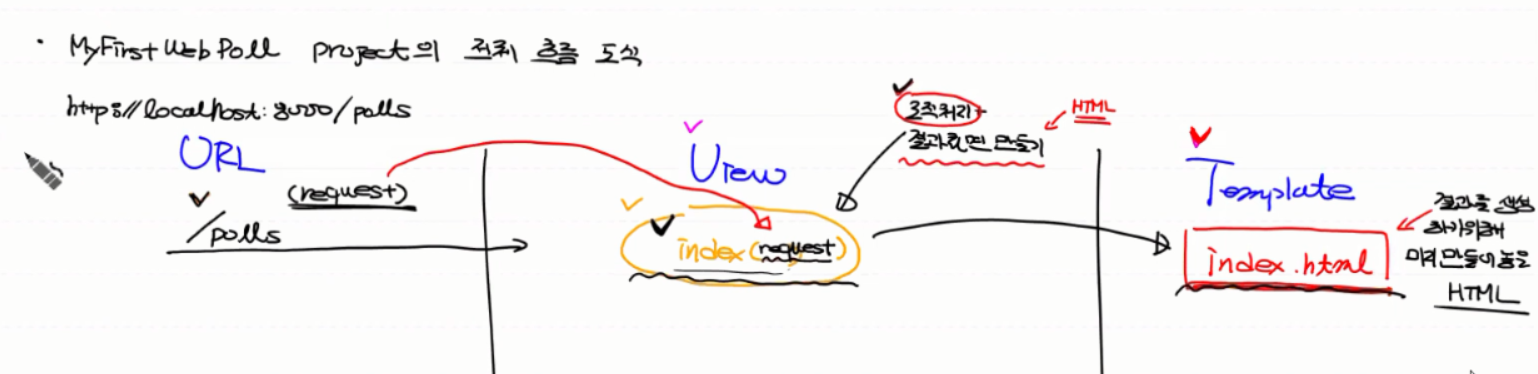 1.url confing가 request 분석후 view에서 index()함수 호출