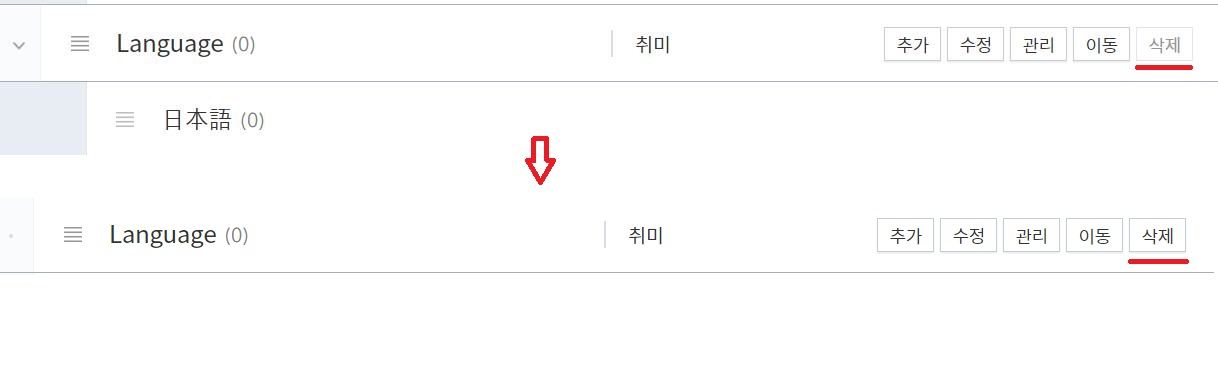 ※ PROTECT 의 예시로 티스토리 블로그의 카테고리 관리창이 있다. 하위목록에 카테고리가 존재할 때는 삭제버튼이 비활성화 되고 하위목록을 지우니 그제서야 삭제버튼이 활성화된다.