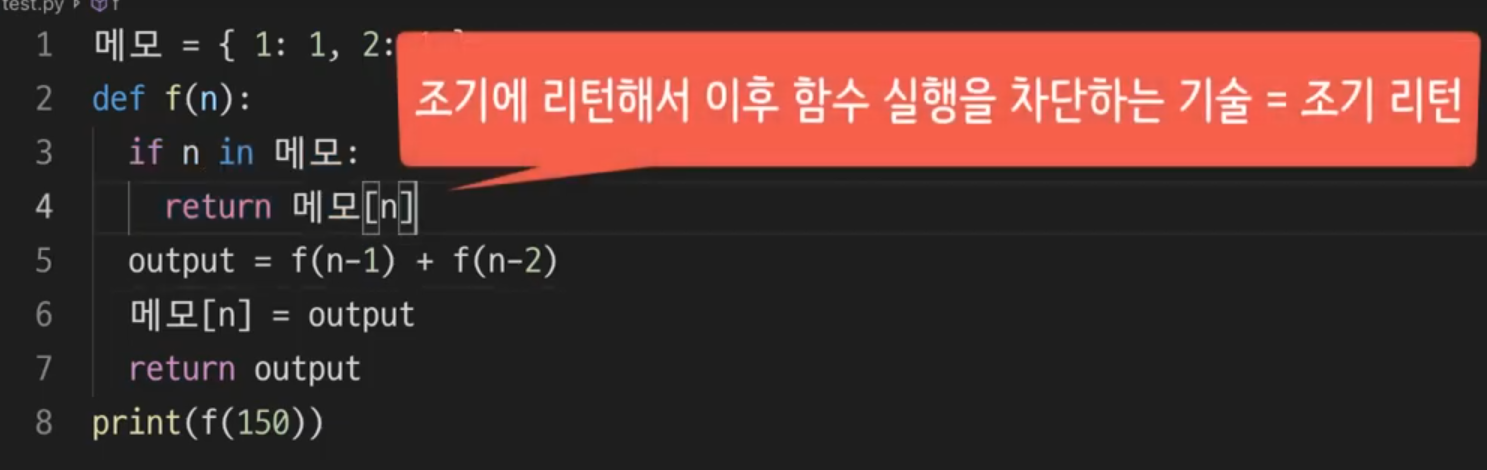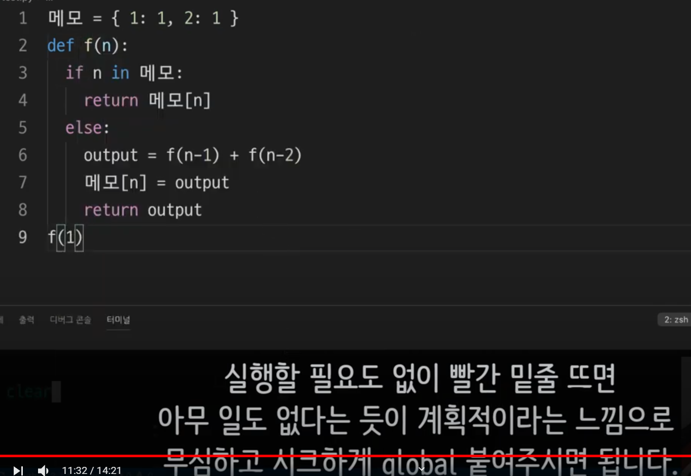 (1)재귀 함수로 구하면 구했던 값을 또 구해 어처구니 없이 많이 실행하여